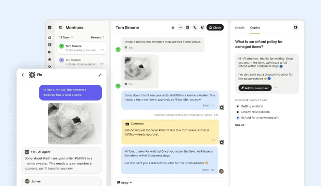 A Intercom é uma plataforma de atendimento ao cliente totalmente orientada por IA, aprimorando a experiência do cliente, melhorando a eficiência operacional e escalando com o seu negócio em cada etapa do processo.